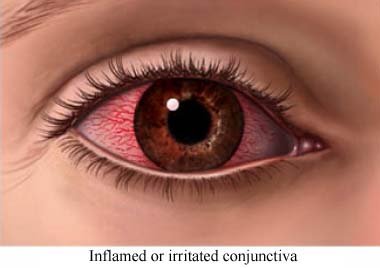 I sintomi e segni: La sintomatologia comune a tutti i tipi di congiuntivite è caratterizzata da edema palpebrale, bruciore, sensazione di corpo estraneo (..come la sabbia negli occhi..), lacrimazione ed arrossamento oculare, spesso secrezione. Il visus può essere conservato, oppure ridotto, non tanto per alterazioni a carico dei mezzi diottrici, quanto per la presenza della lacrimazione.